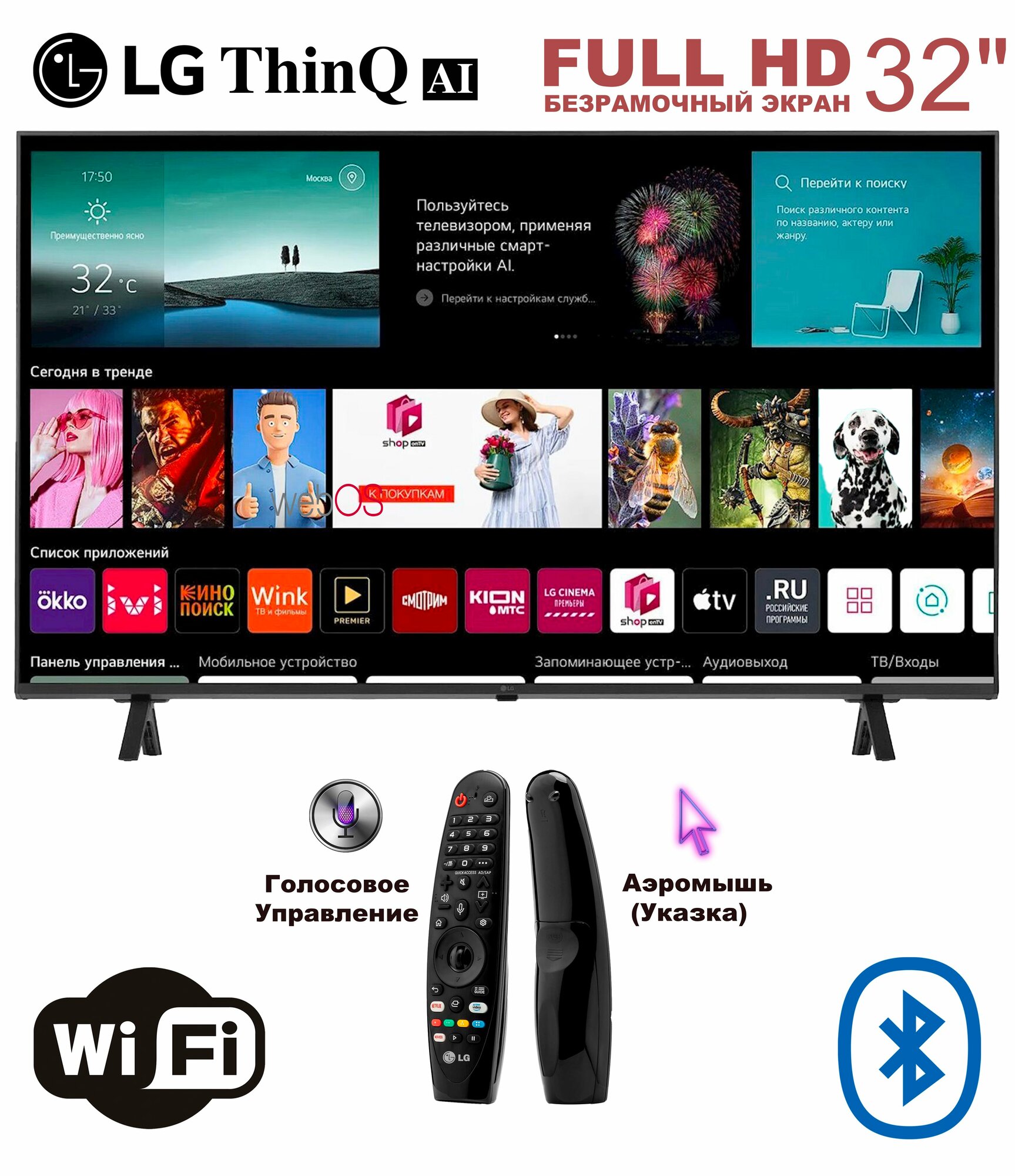 Купить WE OS 32" - ДУ Аэромышь (Указка) - с голосовым управлением и без рамочный экраном.