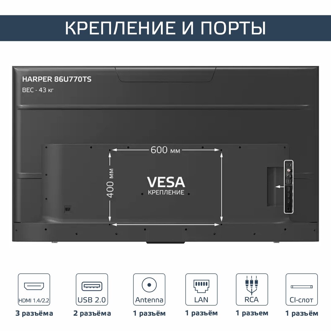 Телевизор HARPER 86U770TS / 4K UHD / SMART TV (Android TV) / 60 Гц / Гарантия 2 года, черный интересное: