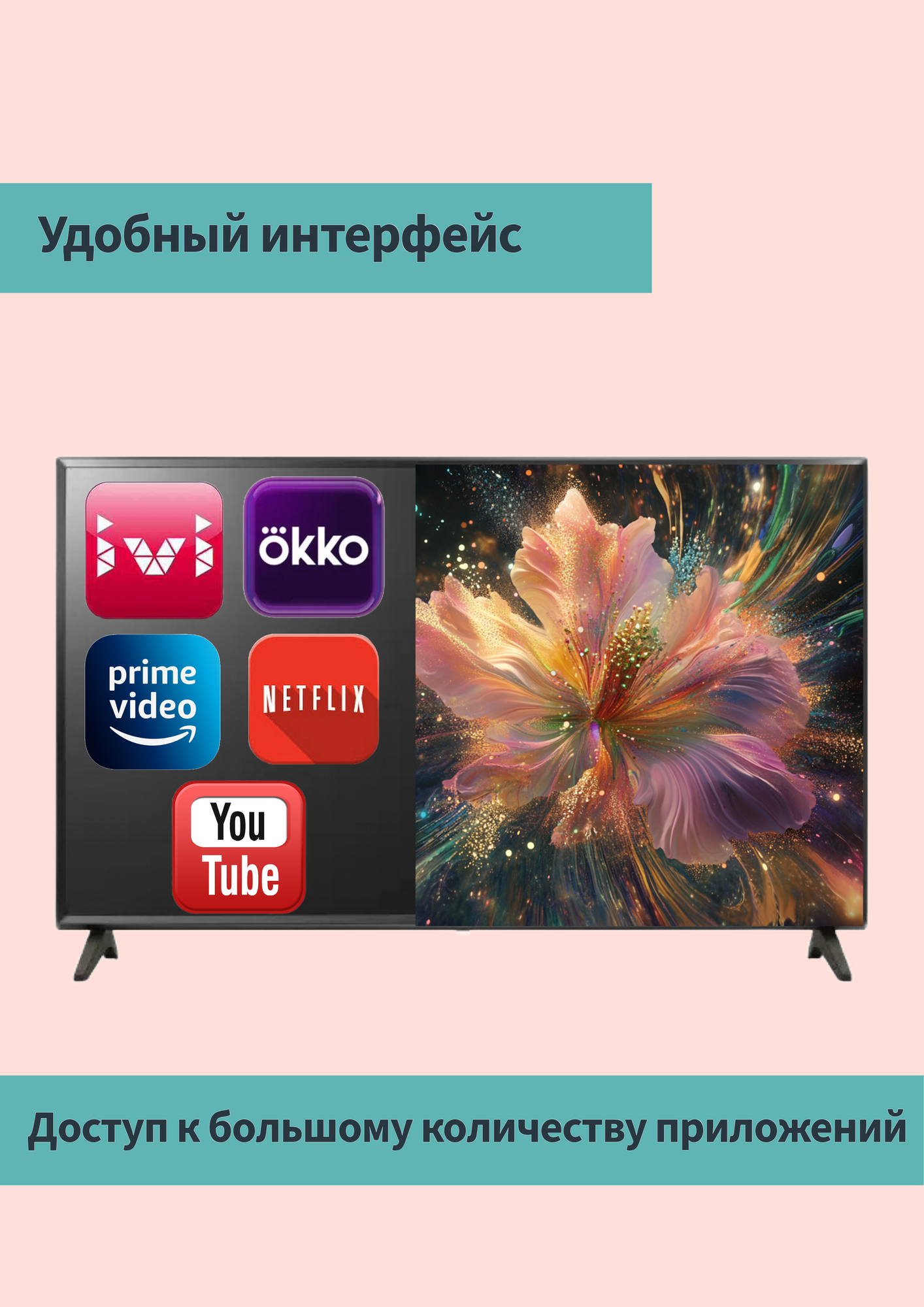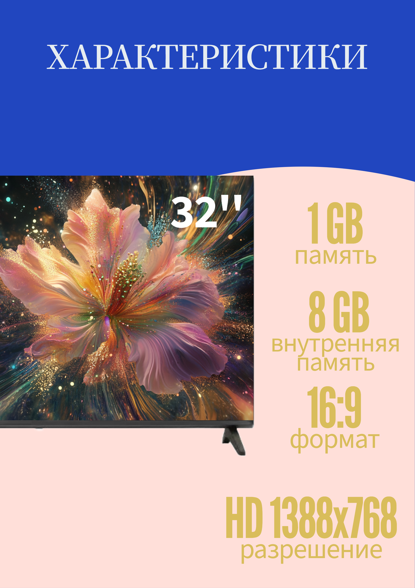 Телевизор Smart TV HD 32 Slim, диагональ 32", голосовое управление интересное:
