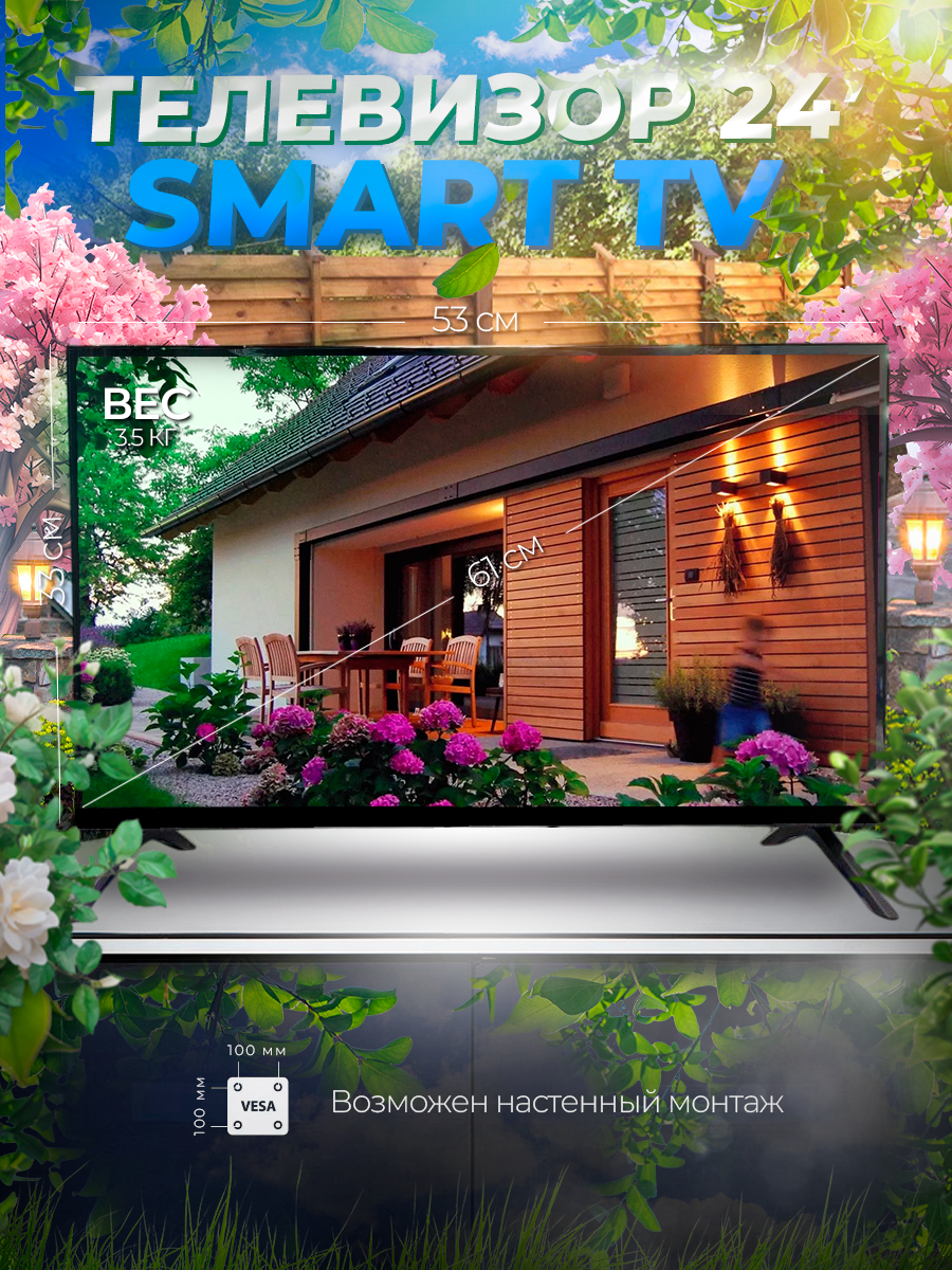 Смарт телевизор Smart TV 24 дюйма (61см), Android, HD, Wi-Fi интересное: