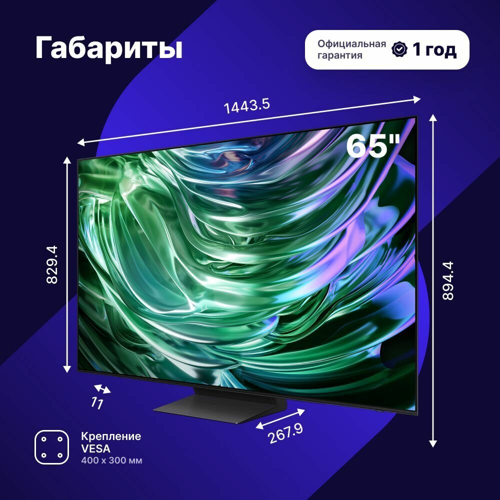 65" Телевизор Samsung QE65S95DAUXCE, QLED, 4K UHD, 144 Гц, Wi-Fi, Bluetooth, чёрный интересное: