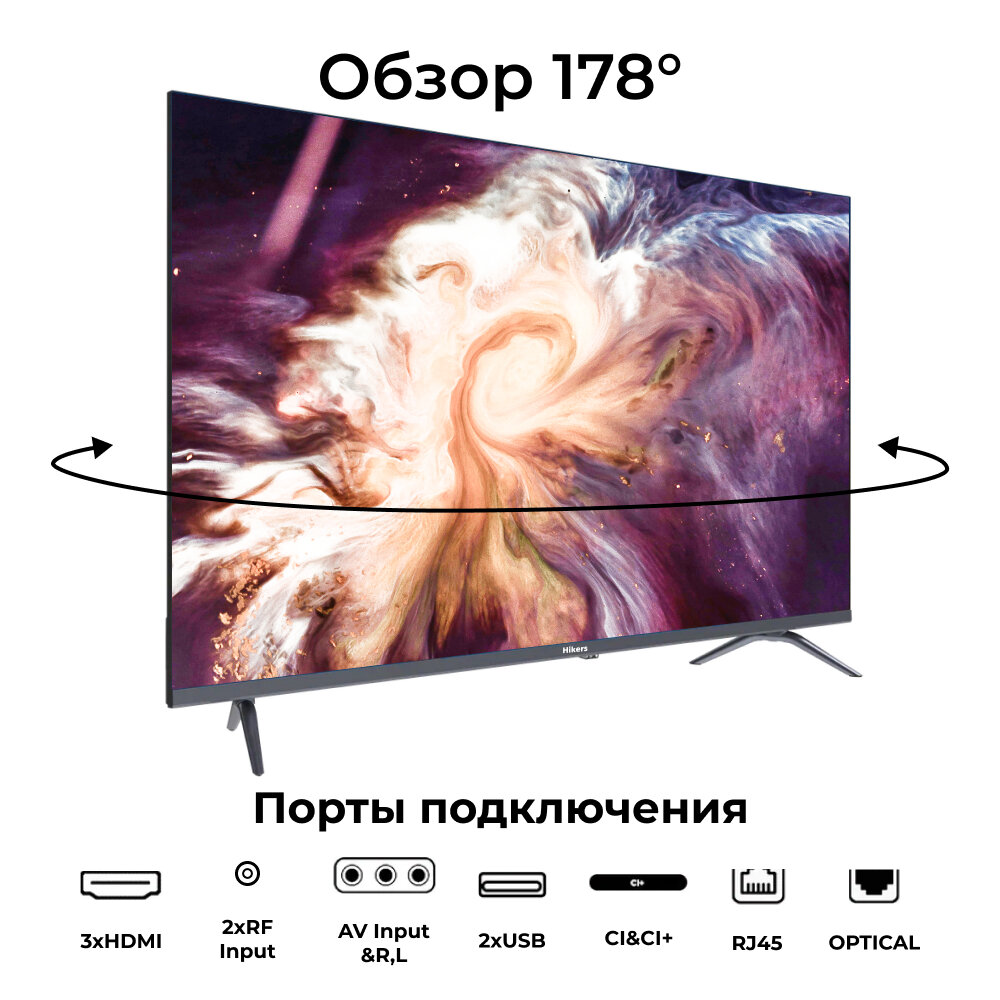 Телевизор 43" со Смарт ТВ Hikers 43HTU01 4K UHD, Smart TV, Wi Fi, Bluetooth, TIZEN OS, MEMC, Dolby Audio, HDR, DLED