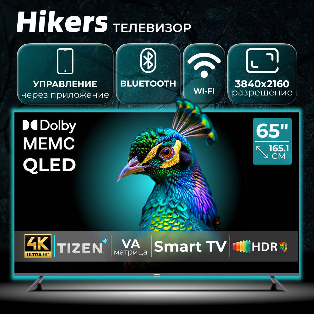 Телевизор 65" со Смарт ТВ Hikers 65HTU01 4K UHD, Smart TV, Wi Fi, Bluetooth, TIZEN OS, MEMC, Dolby Audio, HDR, DLED