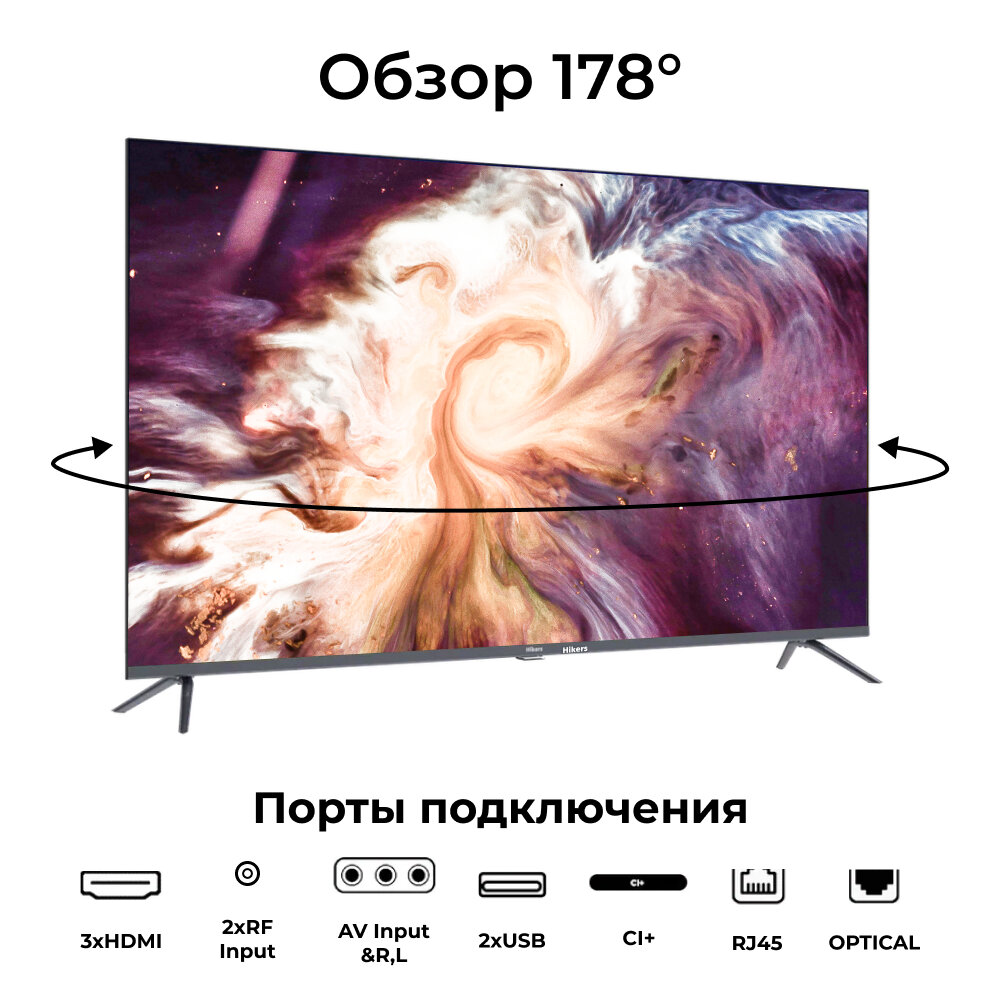 Телевизор 50" со Смарт ТВ Hikers 50HTQ01 4K UHD, Smart TV, Wi Fi, Bluetooth, TIZEN OS, MEMC, Dolby Audio, HDR, QLED