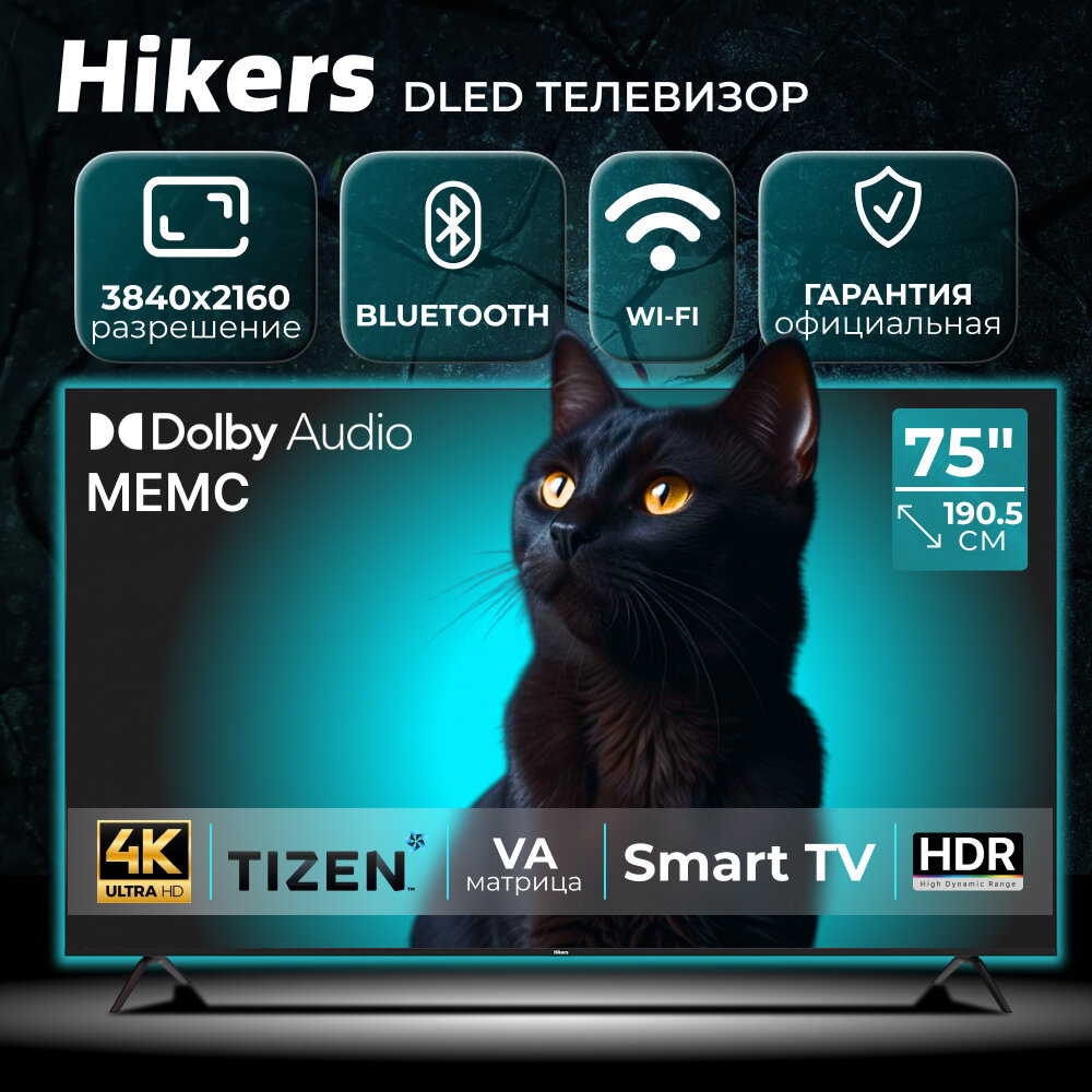 Купить Телевизор 75" со Смарт ТВ Hikers 75HTU01 4K UHD, Smart TV, Wi Fi, Bluetooth, TIZEN OS, MEMC, Dolby Audio, HDR, DLED