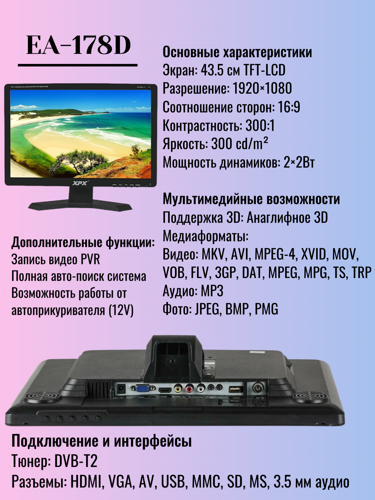 Портативный телевизор Xpx EA-168D DVB-T2 17" (1920x1080)