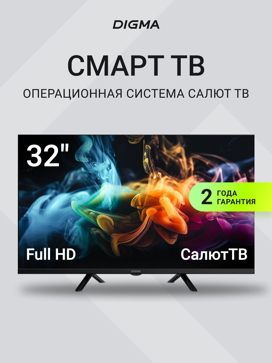 Купить Телевизор Digma Салют ТВ DM-LED32SBB36, 32", LED, FULL HD, Салют ТВ, черный