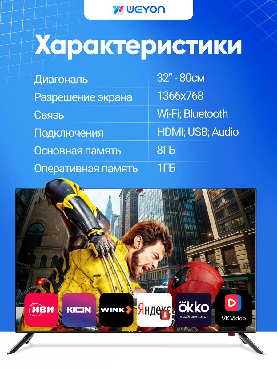 Телевизор WEYON SMART, диагональ 32", разрешение Full HD, ОС WebOS, Wi-F интересное: