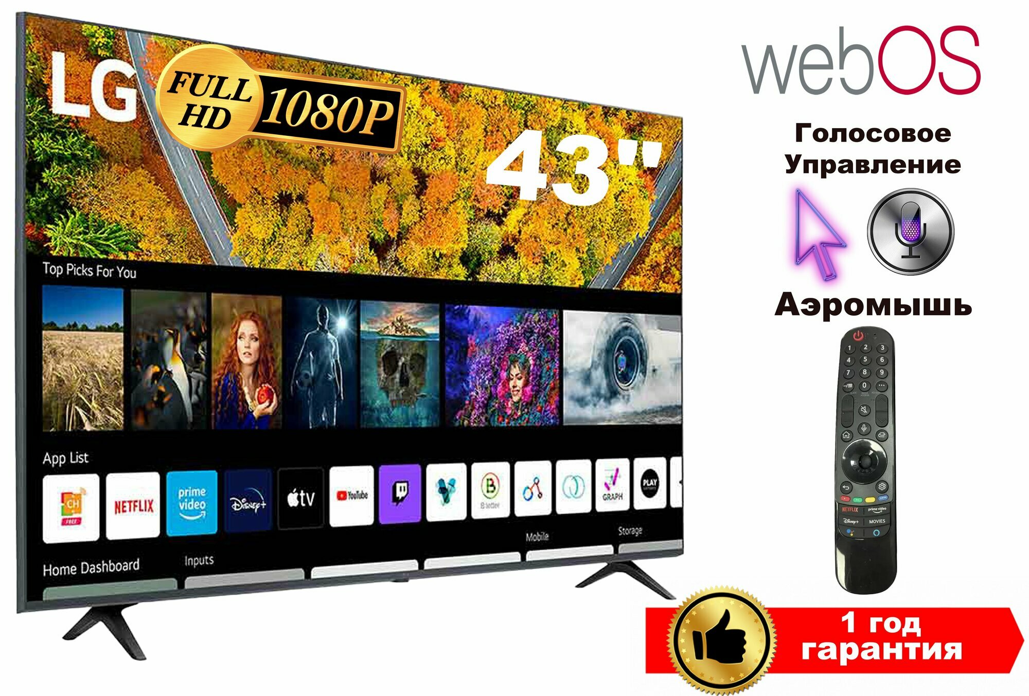 LG-ThinQ AI FHD-43 Smart TV -ДУ Аэромышь - с голосовым управлением. интересное: