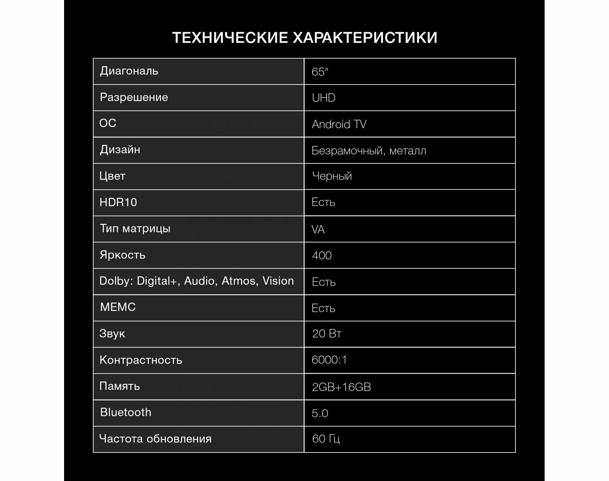 Сохранить65" Телевизор Hyundai H-LED65BU7009, 4K Ultra HD, черный, смарт ТВ, Android TV интересное: