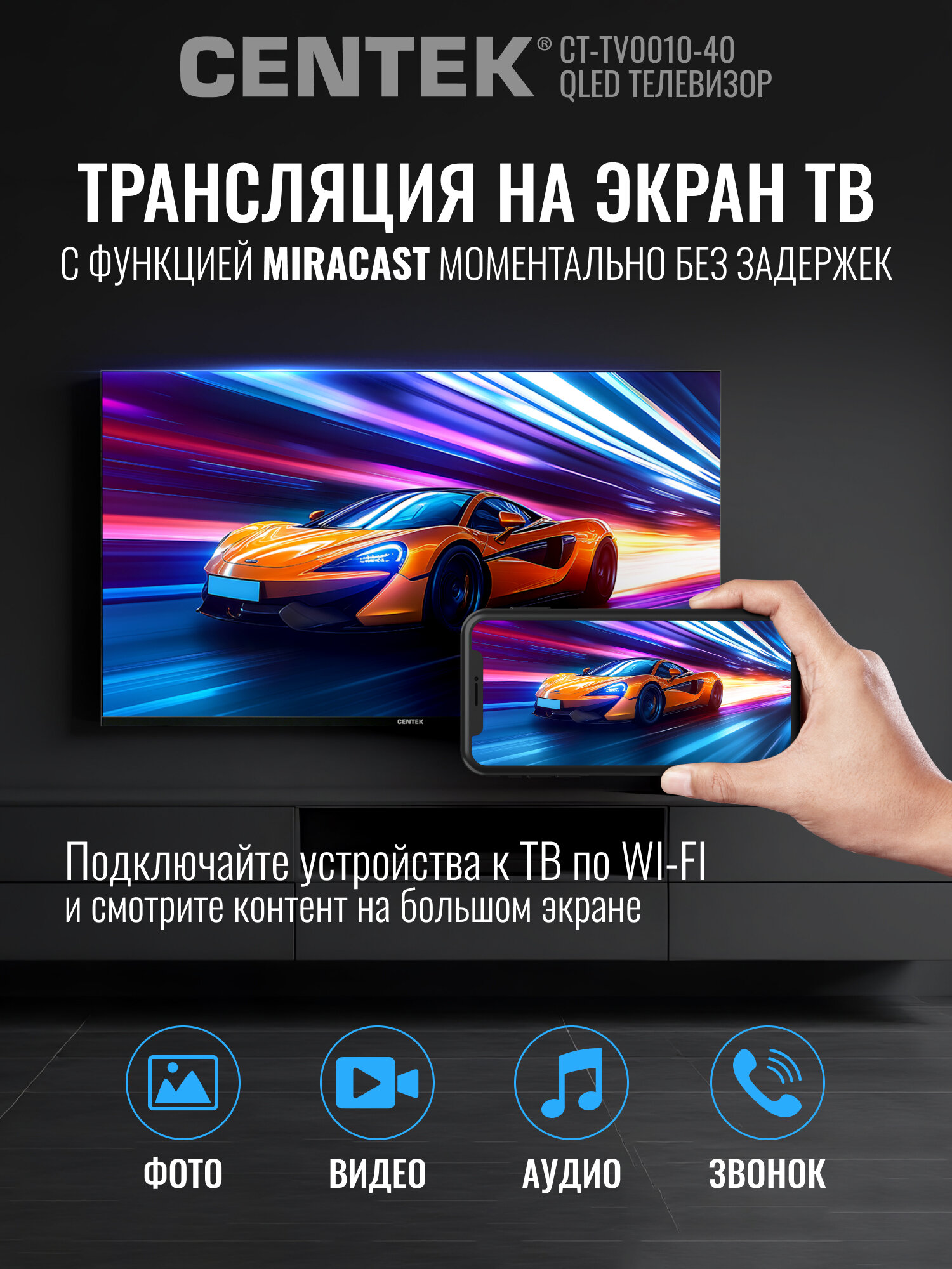 Телевизор 40 дюймов CENTEK CT-TV0010-40 QLED экран/ Full HD/ SMART YaOS/ Алиса/ Wi-Fi/ Bluetooth/ черный интересное:
