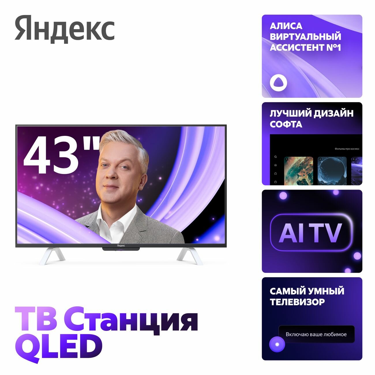 Купить Телевизор Яндекс ТВ Станция с Алисой 43’’ на YandexGPT QLED 4K UHD