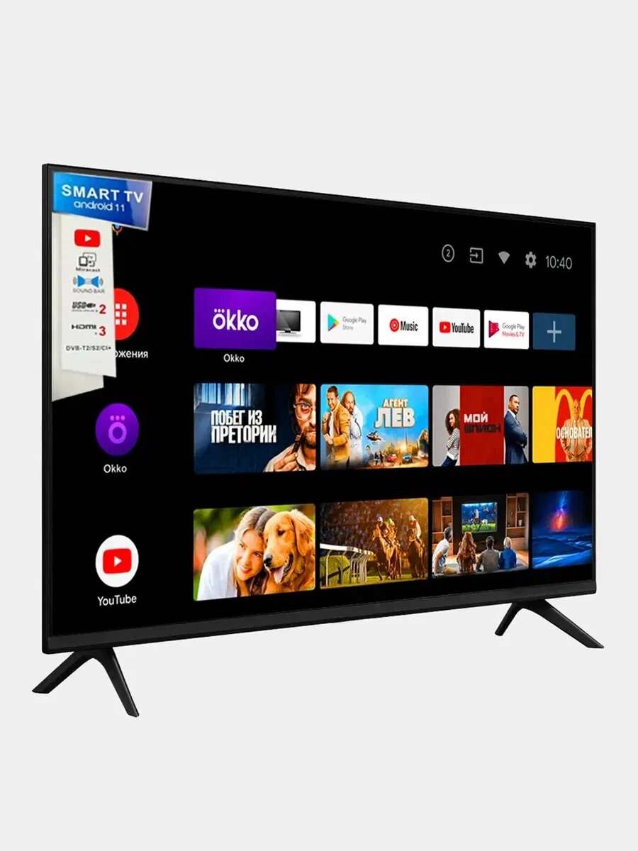 Купить Телевизор Android Smart TV Premium FULL HD 32", с стильный безрамочный экран с голосовым управлением