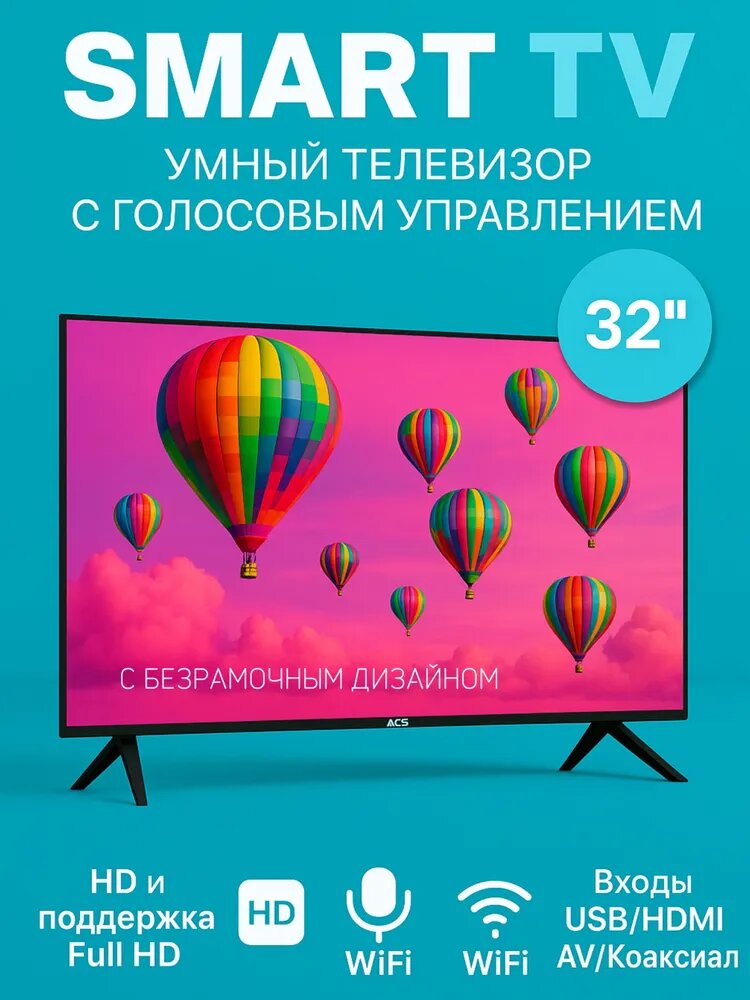 Купить Телевизор ACS Smart TV Android 14, 32 дюйма с безрамочным дизайном