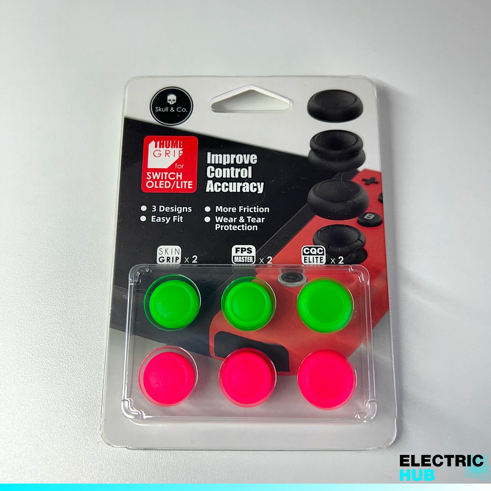 Купить Накладки на стики "Thumb Grip" Skull & Co для Nintendo Switch / OLED / Lite (Joy Con), 6 штук, цвет Розовый и Зеленый (Neon Pink + Green)