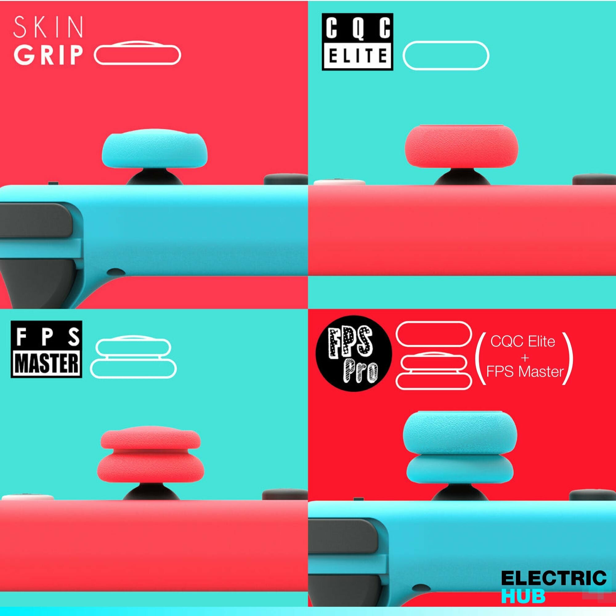 Накладки на стики "Thumb Grip" Skull & Co для Nintendo Switch / OLED / Lite (Joy Con), 6 штук, цвет Розовый и Зеленый (Neon Pink + Green)