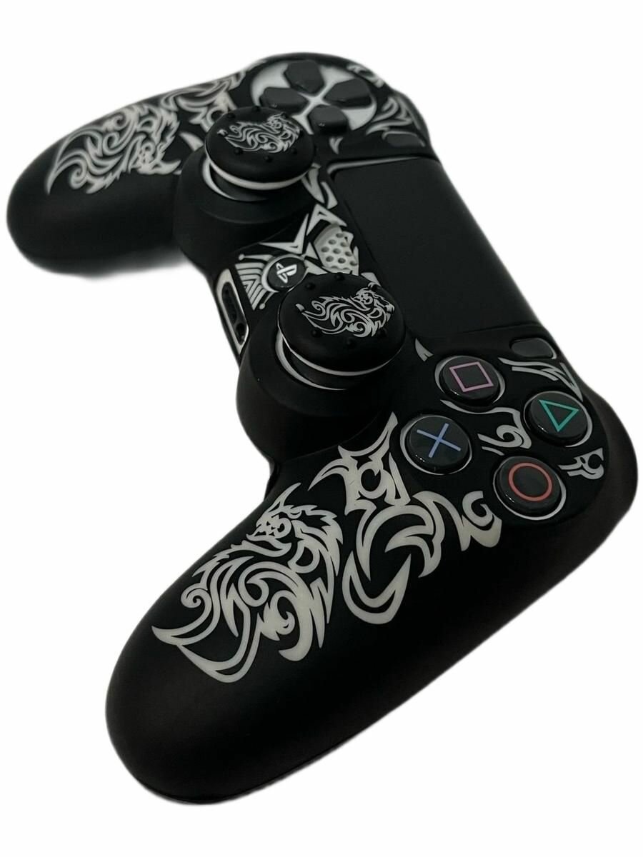 Купить Силиконовый чехол + насадки Белый Дракон для DualShock 4 геймпада Мягкое покрытие SoftTouch (белый)
