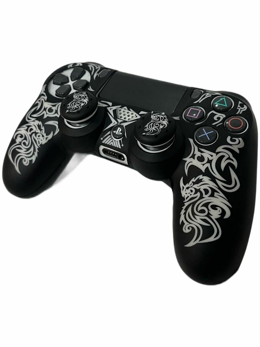 Силиконовый чехол + насадки Белый Дракон для DualShock 4 геймпада Мягкое покрытие SoftTouch (белый) интересное: