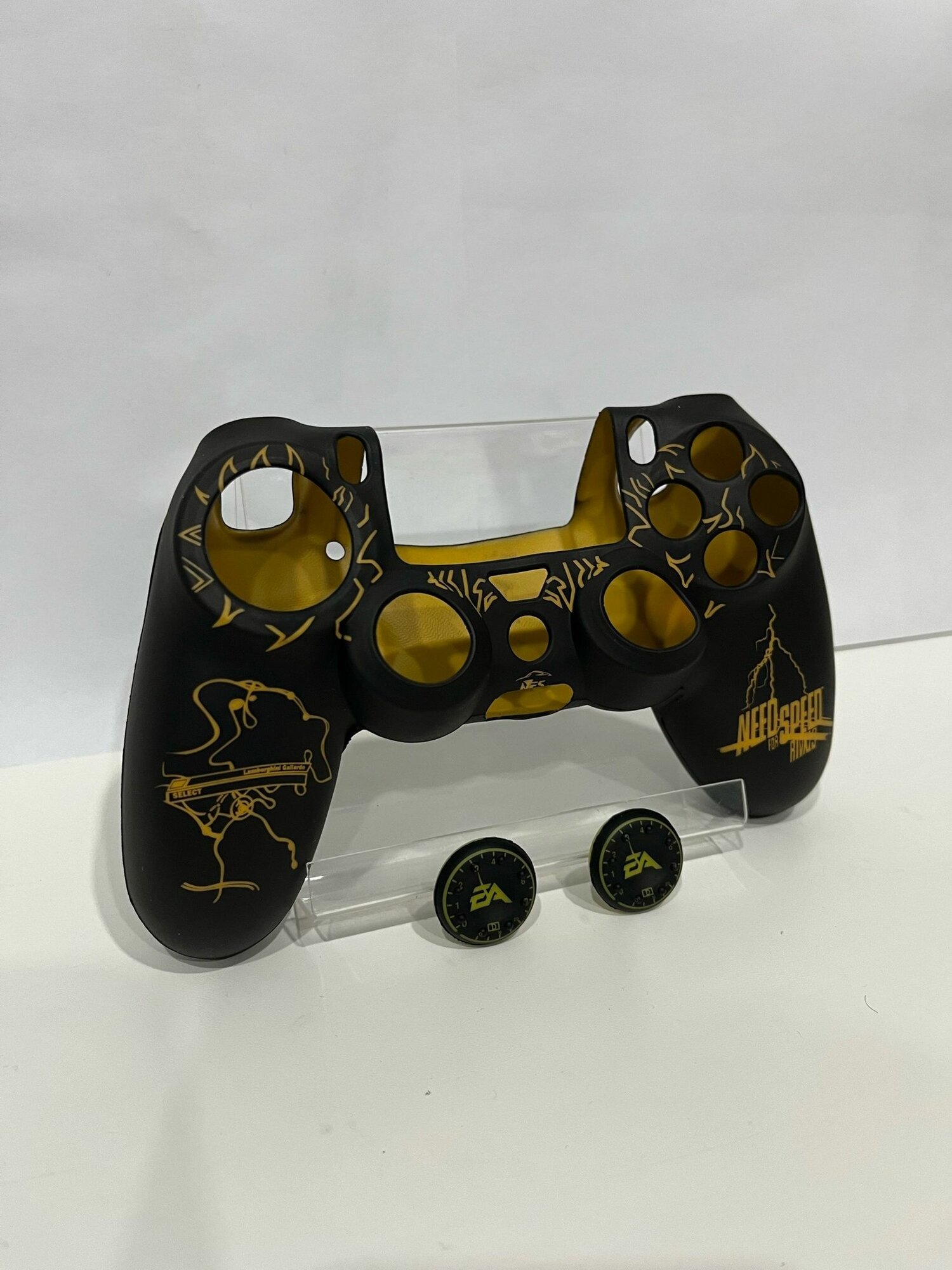 Силиконовый чехол + насадки в стиле NFS для DualShock 4 геймпада Мягкое покрытие SoftTouch (желтый) интересное: