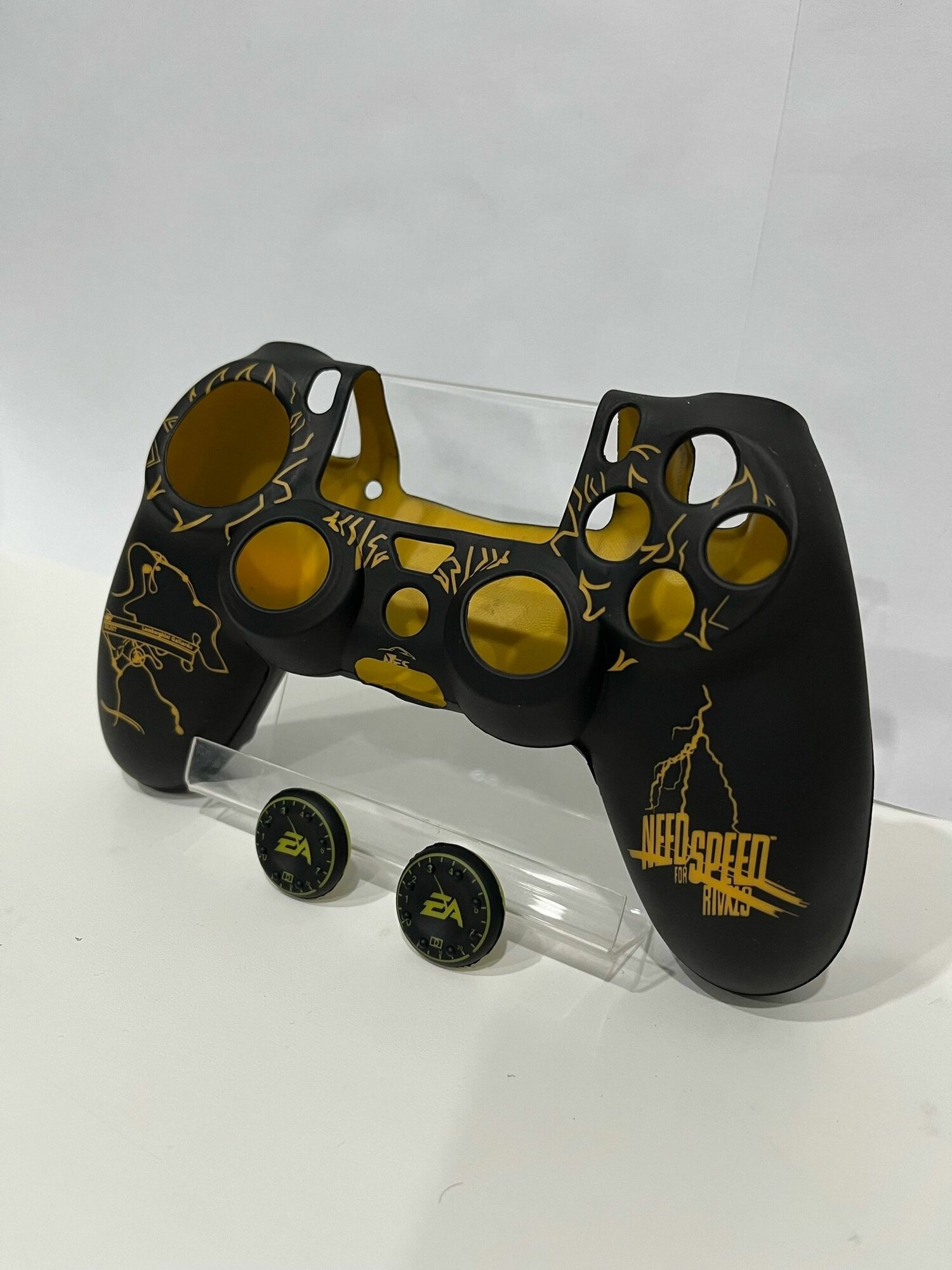 Купить Силиконовый чехол + насадки в стиле NFS для DualShock 4 геймпада Мягкое покрытие SoftTouch (желтый)