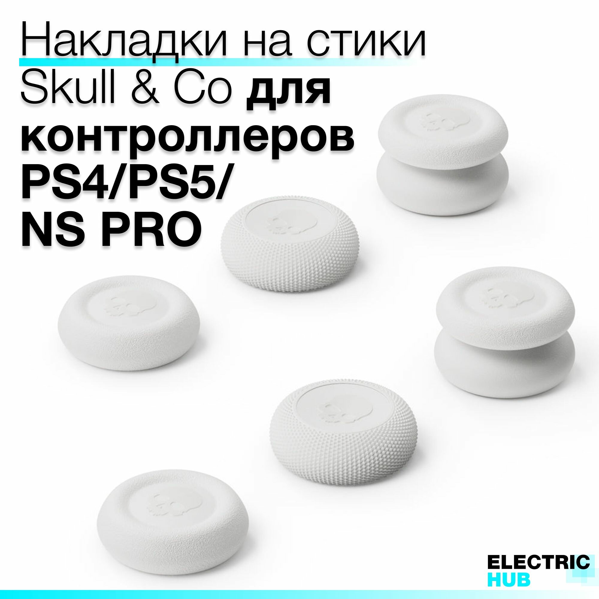 Купить Накладки на стики "Thumb Grip" Skull & Co для PlayStation 4 (DualShock 4) / 5 (DualSense), Nintendo Switch PRO (Controller), 6 штук, цвет Белый (White)