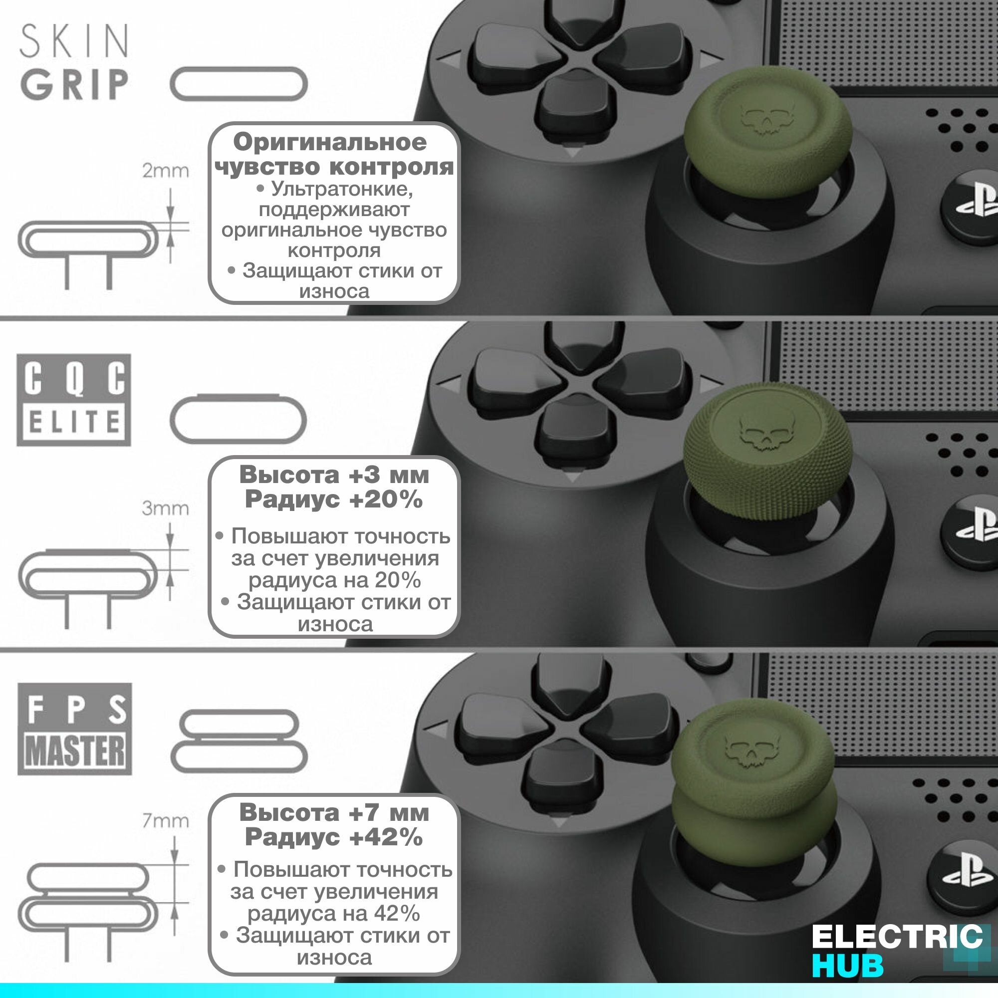 Накладки на стики "Thumb Grip" Skull & Co для PlayStation 4 (DualShock 4) / 5 (DualSense), Nintendo Switch PRO (Controller), 6 штук, цвет Хаки (OD Green)