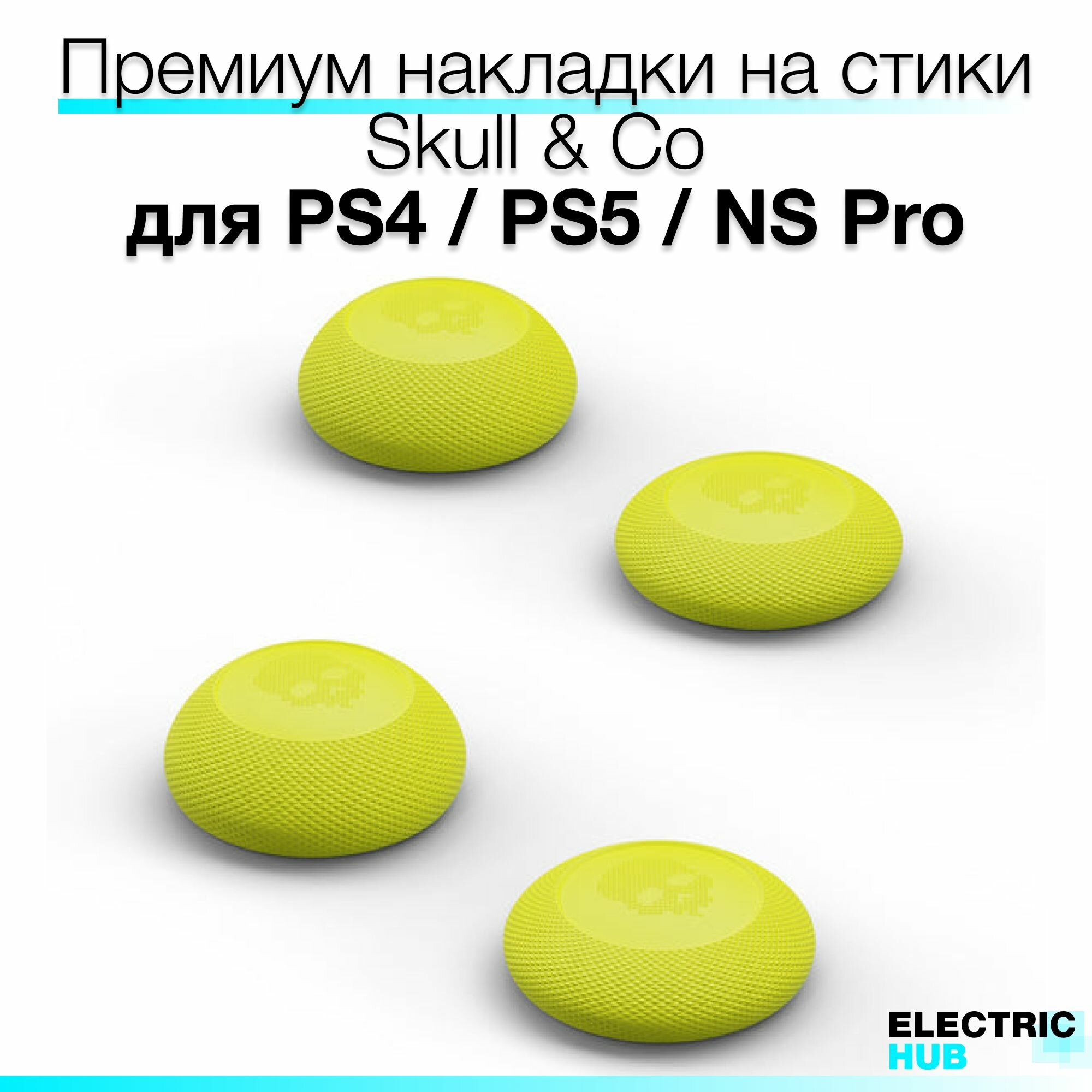 Купить Накладки на стики "Convex Thumb Grip" Skull & Co для PlayStation 4 (DualShock 4) / 5 (DualSense), Nintendo Switch PRO (Controller), 4 штуки, цвет Желтый (Neon Yellow)