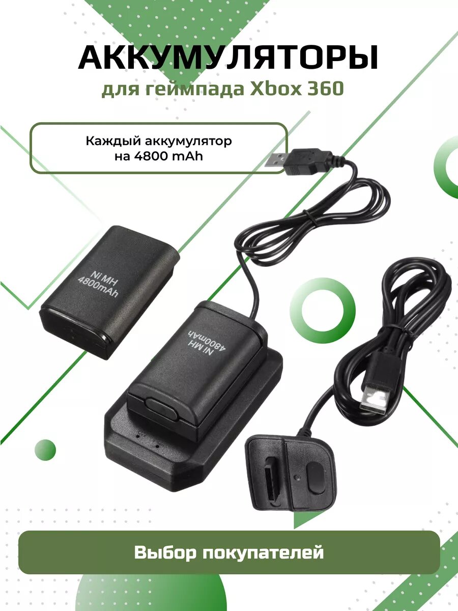 Аккумулятор/сменная батарея для геймпада Xbox 360, 4800 mAh 2шт. + док-станция интересное: