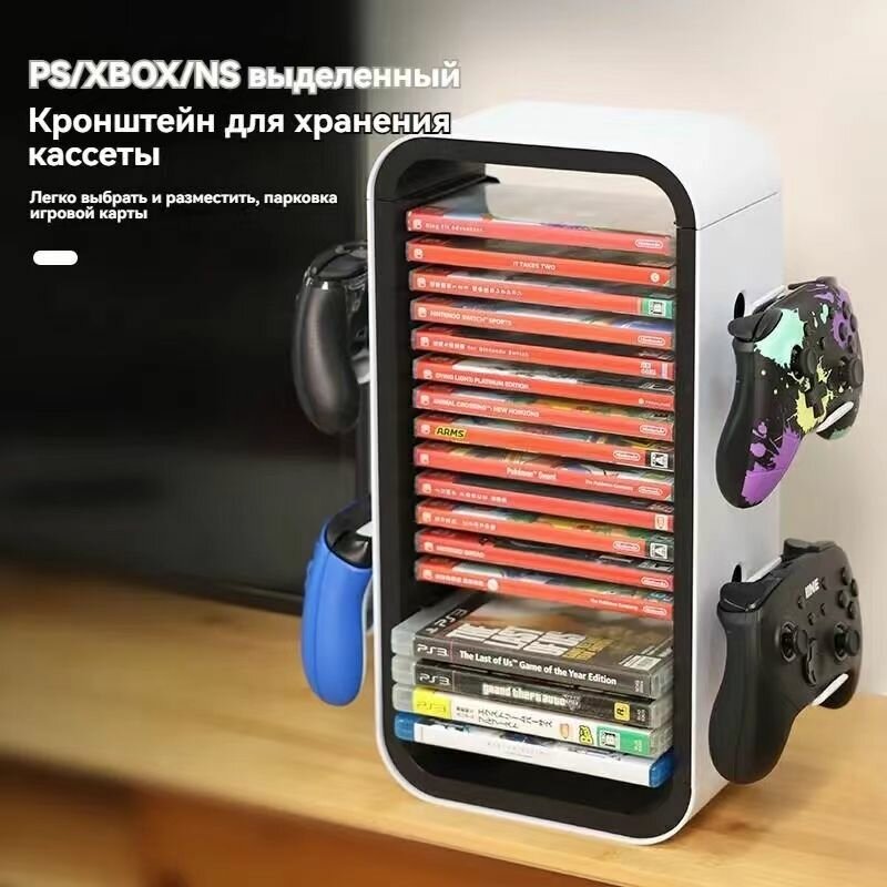 Универсальный футляр для хранения дисков с видеоиграми, 18 шт. Подставка с 4 контроллерами (черный/белый)