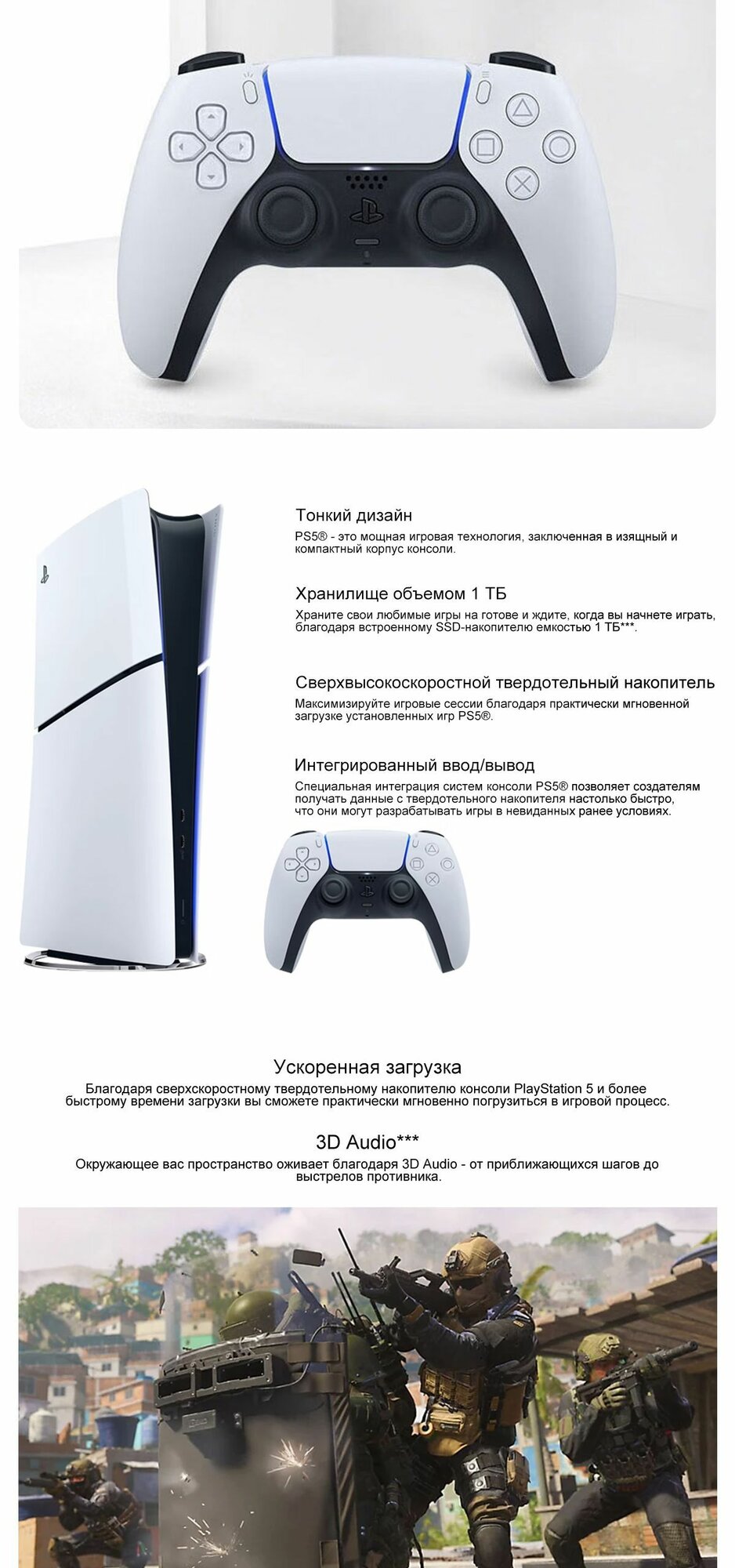 PS5 (ПС5) Игровая приставка Sony PlayStation 5 ( 3-я ревизия) + 2-й геймпад(белый) + зарядное + игра Ghost /825Gb