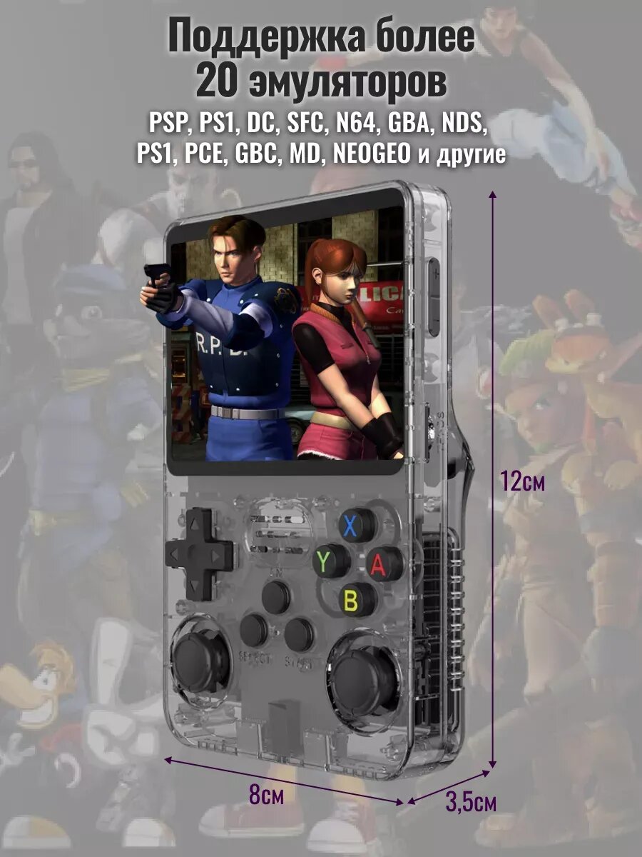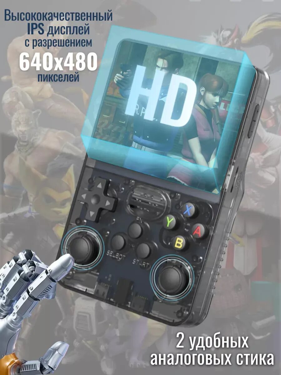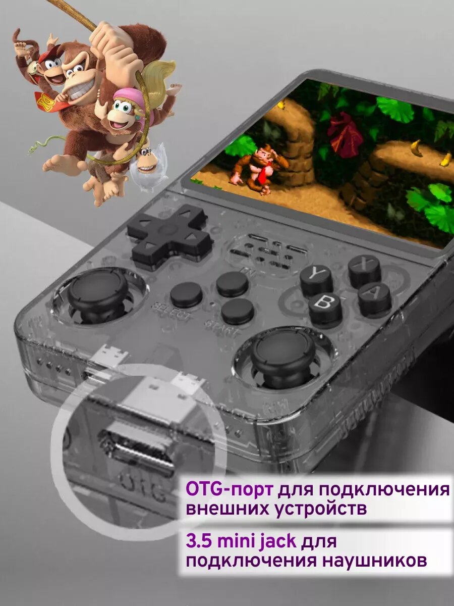 Игровая приставка R36S портативная ретро консоль 64ГБ +15000 игр, черная интересное: