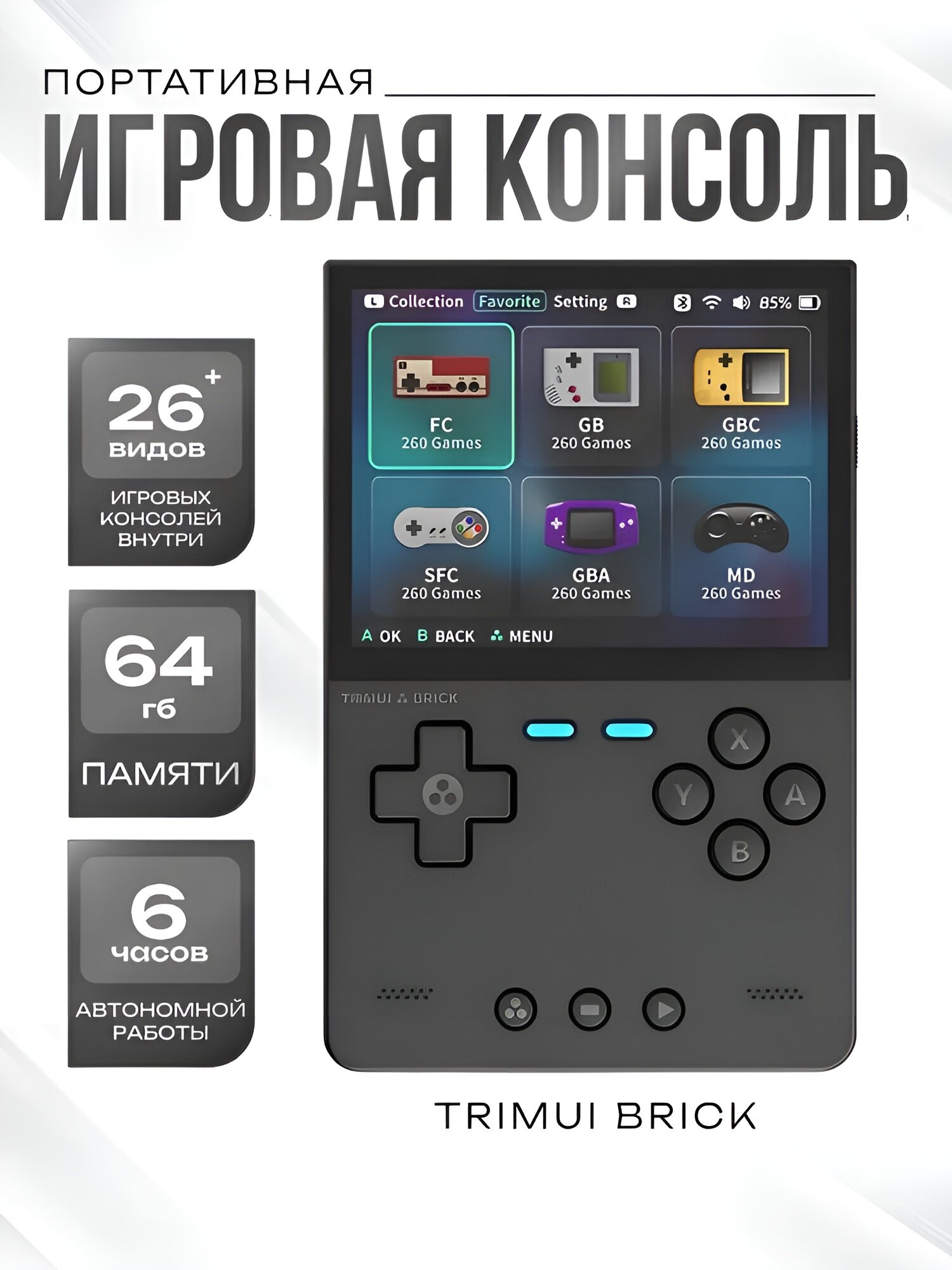 Игровая приставка портативная TRIMUI BRICK, черная + 8000 игр интересное: