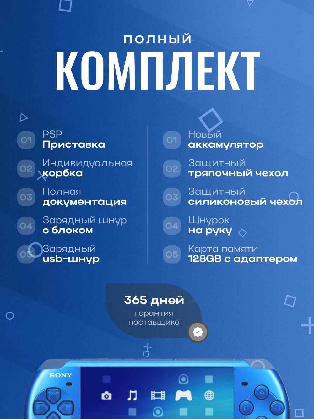 Ниже Вы можете прочитать отзывы на Новые игровые консоли Sony PSP 3008 Slim Blue Wi-Fi 128Gb/700 Игр, ознакомится с подробными характеристиками, посмотреть интересные обзоры и фотографии на Новые игровые консоли Sony PSP 3008 Slim Blue Wi-Fi 128Gb/700 Игр.