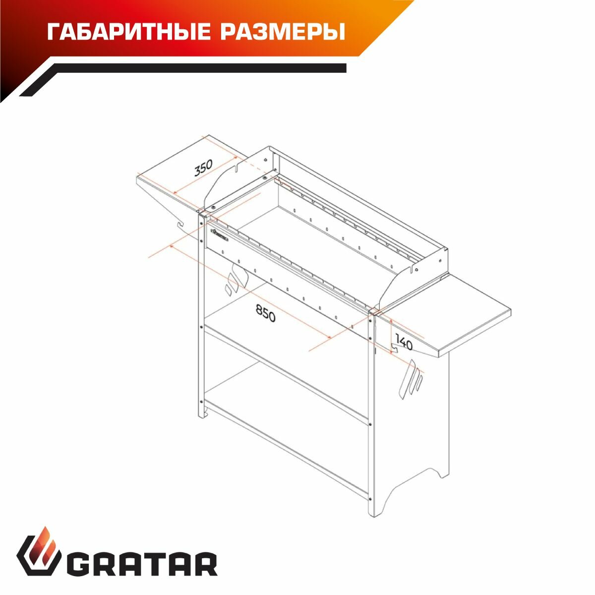 Мангал Gratar Professional Standart Grill, 39.4х158.2х104.1 см, сталь, 3 мм