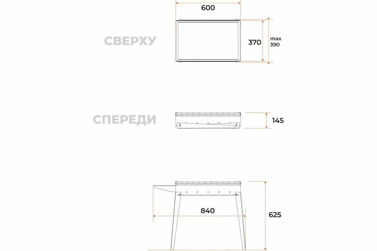 GRATAR Мангал "Классика 600" 84,6 х 38 х 60,7 см, 2 мм, складные ножки, боковая полка