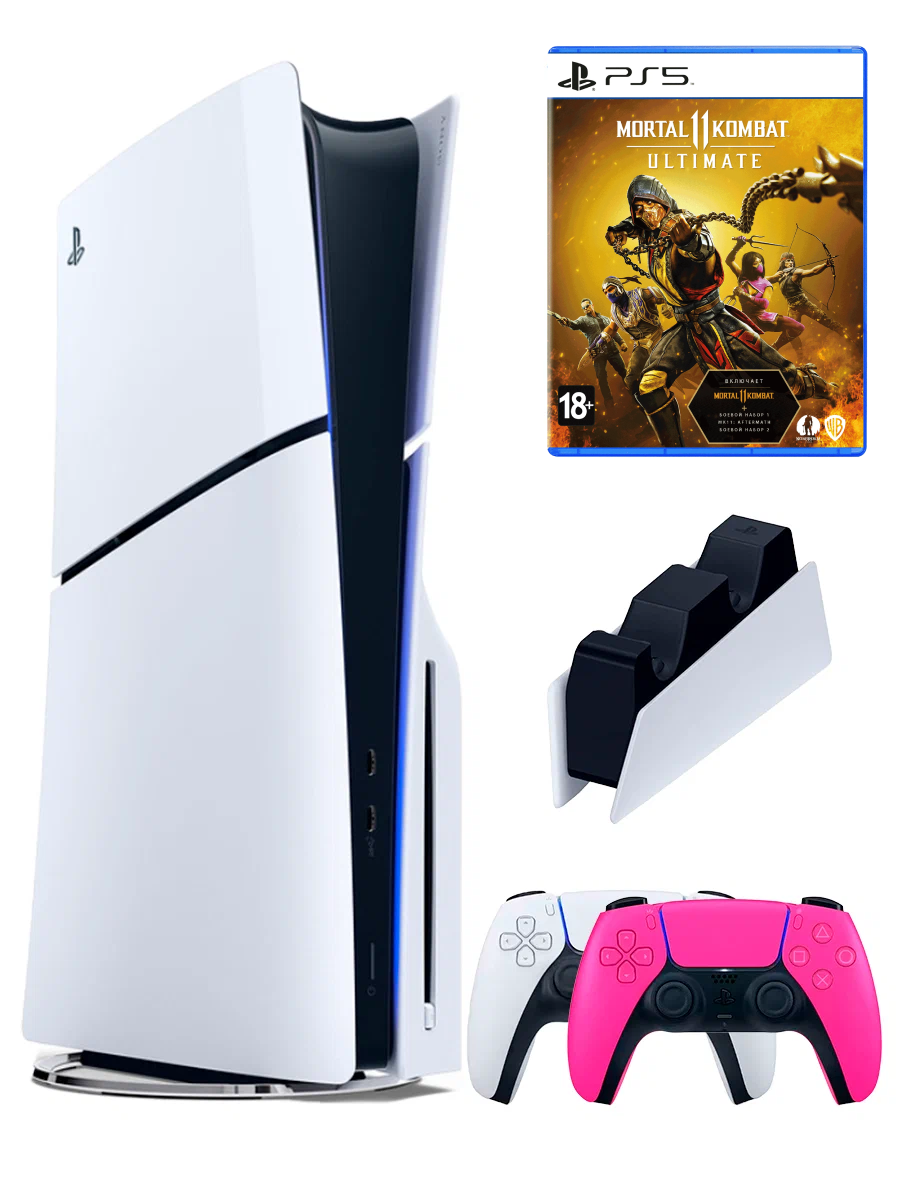 PS5 (ПС5) Игровая приставка Sony PlayStation 5 Slim disc + 2-й геймпад(розовый) + зарядное + игра Mortal Kombat