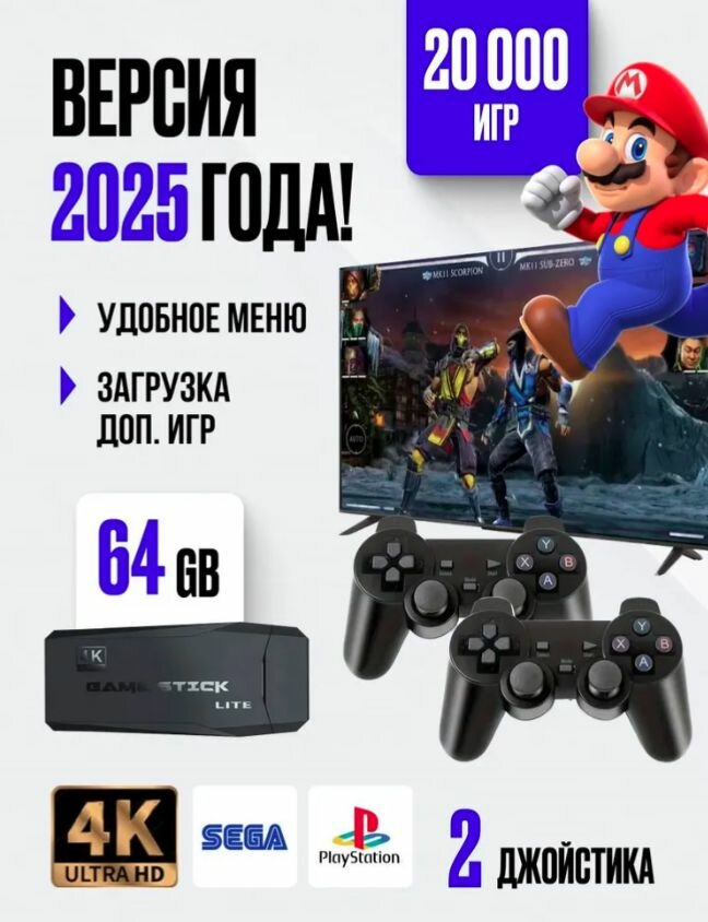 Игровая консоль для телевизора Game Stick Light M8, 20500 ретро игр, 4K , игры Nintendo , Sega, PS1, 64 ГБ интересное: