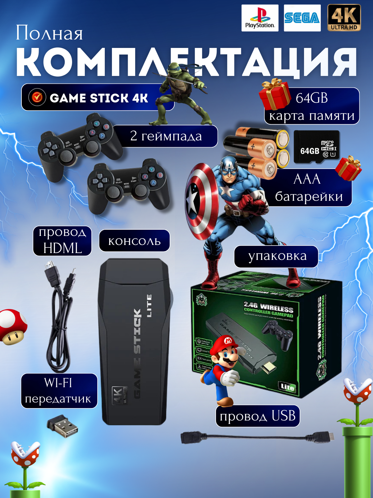 Ниже Вы можете прочитать отзывы на Игровая приставка Game Stick Lite Lite, беспроводная, портативная, 10 тыс игр, 64 ГБ, ознакомится с подробными характеристиками, посмотреть интересные обзоры и фотографии на Игровая приставка Game Stick Lite Lite, беспроводная, портативная, 10 тыс игр, 64 ГБ.