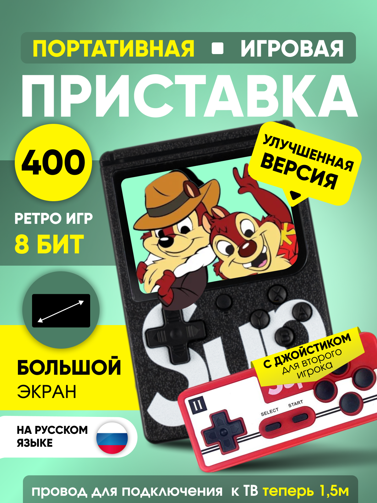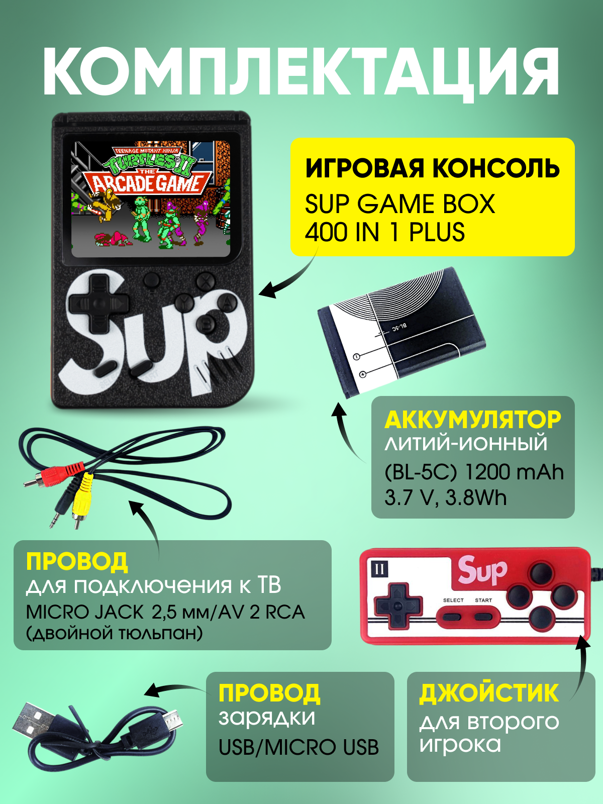 Игровая приставка SUP Game Box 400in1, портативная, 400 предустановленных 8-ми битных игр, черная, с джойстиком интересное: