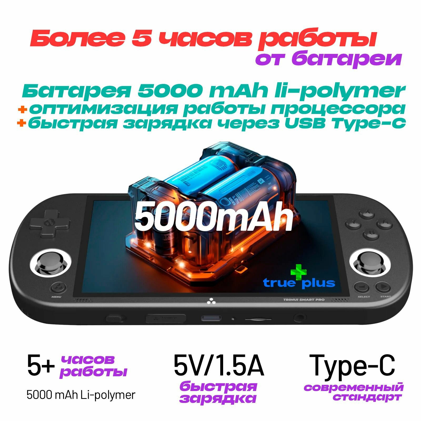 Портативная игровая консоль TRIMUI Smart Pro _ HD Экран 4,96 дюйма, 8 + 128 Гб, черная