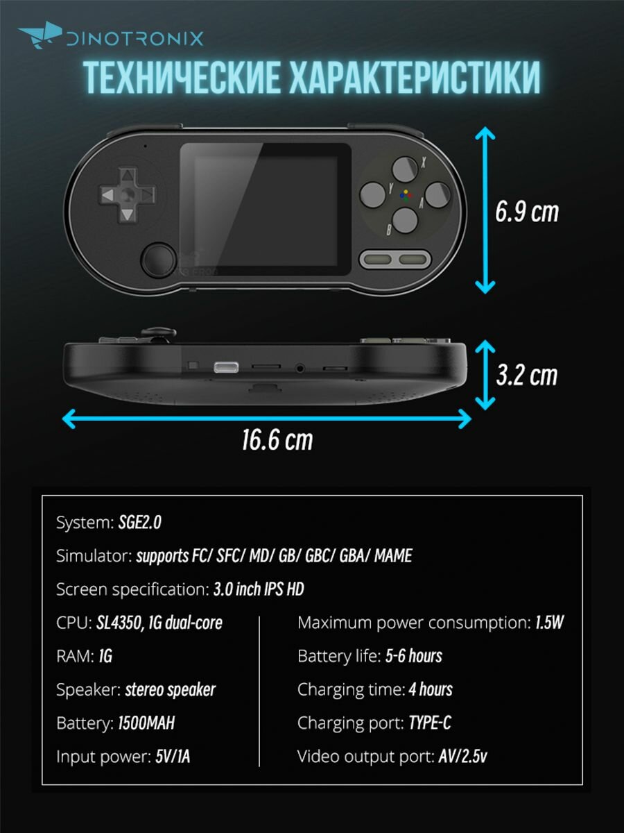 Портативная игровая приставка Dinotronix Dino3200 + Джойстик + 6000 игр + 800 игр на русском интересное: