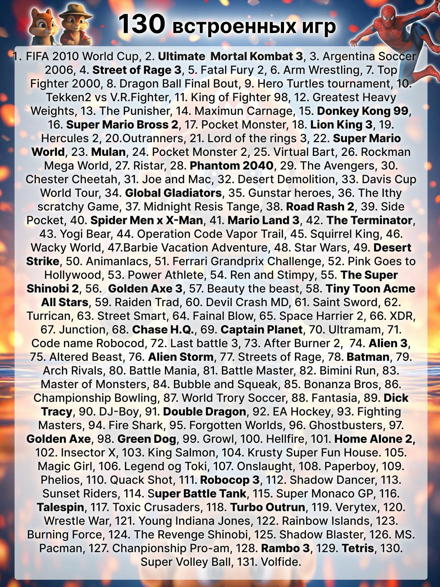 СохранитьРетро игровая приставка SEGA 16bit SuperDrive, 130 встроенных игр, 2 турбо джойстика, игровая консоль для телевизора интересное: