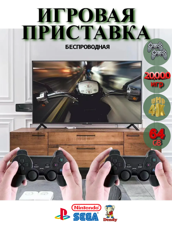Игровая приставка консоль для телевизора, с играми Nintendo, Sega, Playstation, Junior, 20000 игр, 4K, 2 геймпада