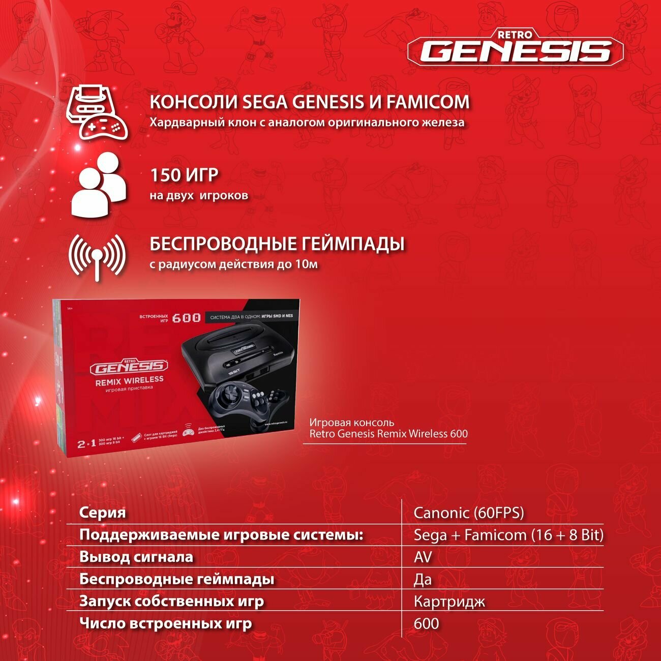 Игровая консоль Retro Genesis Remix Wireless 8+16Bit (600 игр, беспроводные геймпады, RCA) интересное: