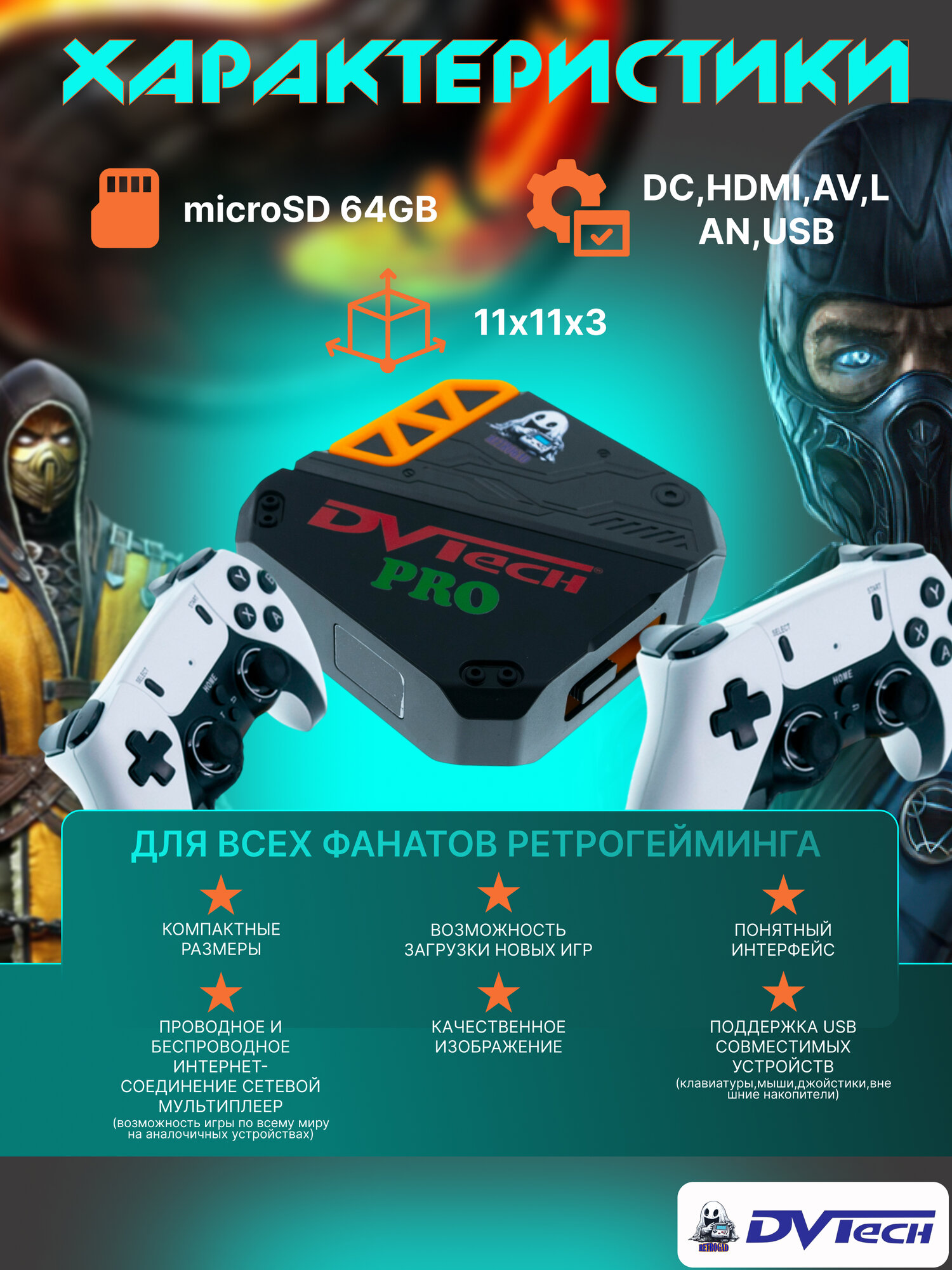 Игровая приставка DVTech "Pro", стационарная, поддержка разных платформ, Wi-Fi, HDMI, черная