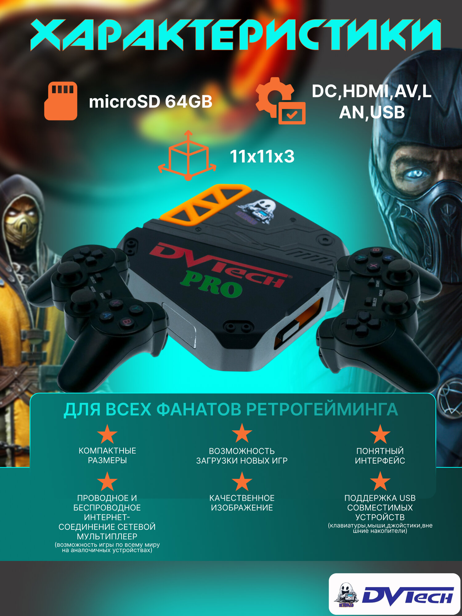 Игровая приставка DVTech "Pro", стационарная, поддержка разных платформ, Wi-Fi, HDMI, черная интересное: