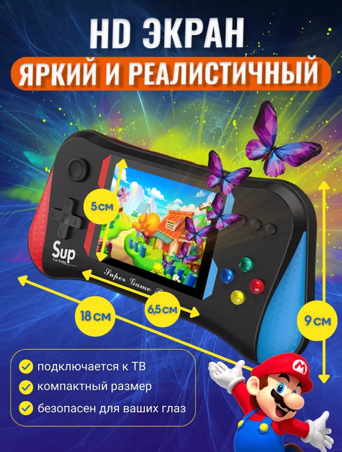 Игровая приставка, портативная, 500 игр, диагональ 8 дюймов, HDMI, черный интересное: