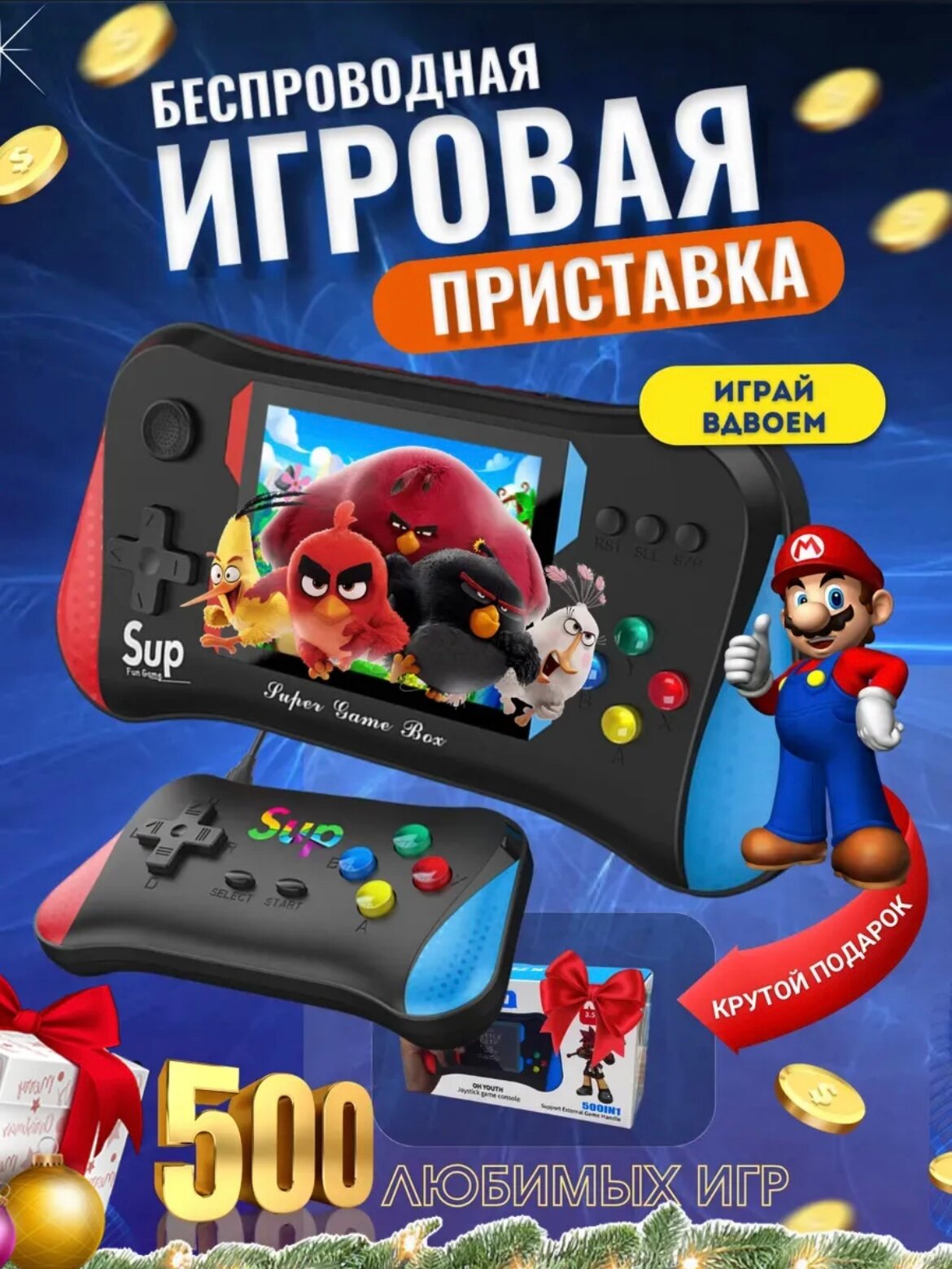 Lemon Tree SUP 400 в 1 Портативная игровая приставка + джойстик (Красная)