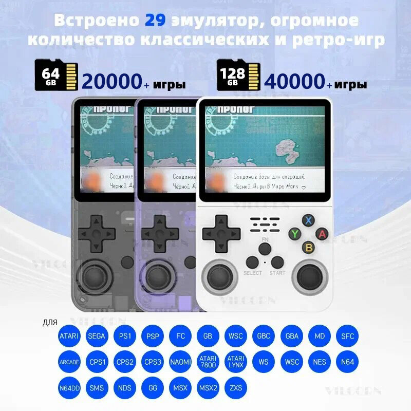 Портативная игровая консоль R36S Pro (128GB) улучшенная версия с 40000+ игр! Поддержка PSP, HDMI, 3.5" экран интересное: