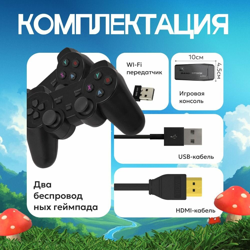 Игровая приставка, консоль Game Stick Lite 64Gb, 3555 игр, 4K, 2,4 ГГц, 8 бит, 16 бит, 32 бит